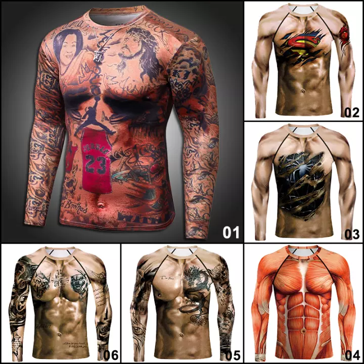 เสื้อออกกำลังกายแขนยาวสำหรับผู้ชาย,เสื้อยืดพิมพ์ลาย3D สำหรับออกกำลังกายวิ่งเล่นยิมเล่นกีฬา